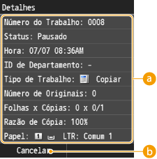 O número de cópia, configurações e outros detalhes são exibidos. Se você deseja somente verificar os detalhes sem cancelar a cópia, pressione