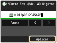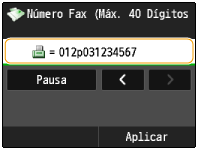 4 | Toque em <Pausa> para inserir uma pausa ao final do número de fax conforme necessário. O tempo de espera inserido aqui é fixado em 10 segundos. Este tempo não pode ser alterado. ![]() |