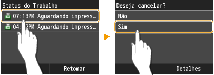 Os documentos foram digitalizados e estão esperando para serem processados. Toque no documento a ser cancelado.