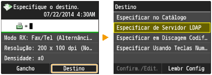| | Se seu escritório possui um servidor LDAP instalado, você pode usar os destinatários registrados no servidor. Para especificar destinatários, acesse um servidor LDAP através da máquina e então pesquise um destinatário. |