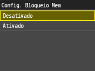 Para armazenar documentos na memória, defina <Config. Bloqueio Mem> para <Ativado>. Você também pode especificar configurações opcionais, tais como uma configuração de segurança que torna necessária uma senha para desbloquear o recurso e uma configuração de tempo que especifica um período de tempo durante o dia no qual os documentos recebidos serão armazenados na memória.