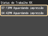 Você não pode selecionar um documento específico para a impressão. Se foi especificado um horário para a desativação do recurso, os documentos serão impressos automaticamente no horário especificado. |