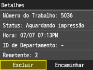 Você pode verificar informações detalhadas sobre os documentos armazenados na memória, incluindo números de remetente para faxes e o número de páginas enviadas, e depois excluir os documentos desnecessários.