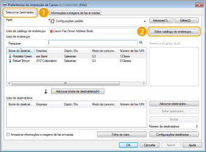 Esta seção descreve como registrar destinos no Catálogo de endereços para PC faxes. Você pode selecionar destinos únicos dentre aqueles registrados no Catálogo de endereços para formar um grupo de destinos (Discagem de grupo), o que é útil para enviar a destinos múltiplos de uma só vez.