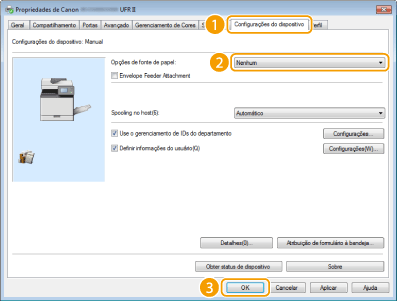 Se você for usuário de Macintosh, consulte o Manual de Instalação fornecido com o driver para saber como instalar os drivers de impressora e a Ajuda do Driver de Impressora para saber como usar as funções de impressão (Para usuários de Mac OS). Dependendo do sistema operacional e do tipo ou versão do driver de impressora que você utiliza, as telas de driver de impressora neste manual podem ser diferentes de suas telas. Você pode usar o driver de impressora PCL5c, PCL6 e PS bem como o driver de impressora UFR II. As configurações de impressão disponíveis variam dependendo do driver de impressora. Para mais informações, clique em [Ajuda] em cada tela de driver de impressora. |