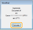 Cancelando da IU remotaVocê pode cancelar a impressão a partir da página [Status do Trabalho] na IU remota: Verificando o status atual dos documentos impressosCancelando a partir de um aplicativoEm alguns aplicativos, uma tela como a mostrada abaixo é exibida. Você pode cancelar a impressão clicando em [Cancelar]. |