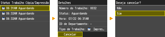 Toque no documento de cópia na tela <Status Trabalho Cópia/Impressão>