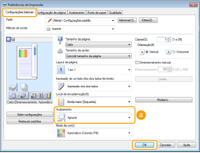 Selecione [Agrupar] ou [Classificar] em [Acabamento]
