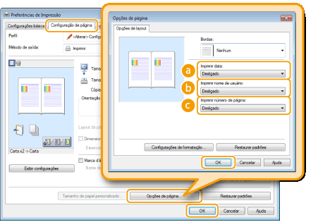 [Imprimir número de página]Alterando o formato de impressão de datas e números de página |