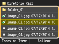 Você pode alterar o método de exibição de <Detalhes> (para nomes e datas de modificação de arquivos) para <Imagens> (para visualizações). Visualizando as imagens você pode verificar o conteúdo do arquivo antes de selecioná-lo para impressão.