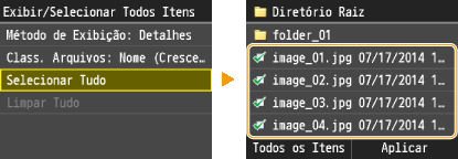 | Quando você tocar em <Data/Hora (Crescente)> ou <Data/Hora (Decrescente)>, os arquivos são classificados com base na data e horário de modificação dos arquivos. |