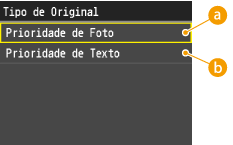 Você pode selecionar o tipo de original dependendo da imagem a ser impressa. Toque em <Prioridade de Foto> ou <Prioridade de Texto>.
