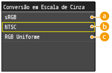 Essa configuração permite que você especifique como os dados em preto e cinza com a razão equivalente de R para G para B devem ser processados quando os dados RGB dependentes do dispositivo são convertidos em dados CMYK dependentes do dispositivo usando <Perfil de Origem RGB> da máquina.
