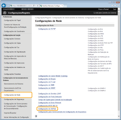 Ativar o AirPrint selecionando a caixa de seleção [Usar AirPrint] também ativa as configurações (IPv4) <Usar HTTP> e <Configurações de mDNS>.