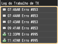 Os registros para e-mails enviados ou documentos digitalizados para pastas compartilhadas ou servidores de arquivo podem ser verificados em uma lista.