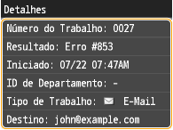 Quando <Exibir Log do Trabalho> é definido como <Desativado>, você não pode verificar os registros dos documentos enviados. |
