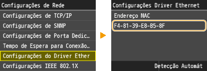 O endereço IP não é configurado corretamente se ele for exibido como "0.0.0.0". Conectar a máquina a um hub ou ponte pode resultar na falha da conexão mesmo quando o endereço IP está corretamente configurado. Esse problema pode ser resolvido definindo um certo intervalo antes da máquina começar a se comunicar. Definindo um tempo de espera para a conexão com uma rede Você pode imprimir uma lista das definições de rede atuais. Lista dados usuário/Lista dados administrador sistema |