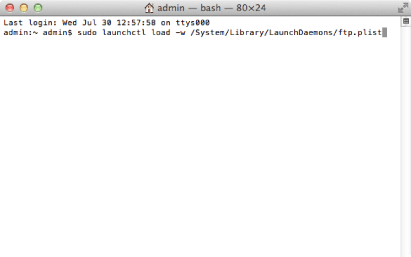 3 | Execute o seguinte comando. sudo launchctl load -w /System/Library/LaunchDaemons/ftp.plist ![]() |