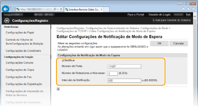 1 | Clique em [Editar...] em [Configurações de Notificação de Modo de Espera]. ![]() |