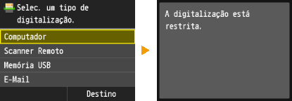Se a caixa de seleção for selecionada, você pode selecionar <Computador> ou <Scanner Remoto> na tela principal e documentos de digitalização em um computador a qualquer momento. Desmarque a caixa de seleção para desativar a digitalização mesmo se <Computador> ou <Scanner Remoto> forem selecionados quando o Gerenciamento de IDs do departamento estiver ativado.
