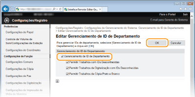Marque a caixa de seleção [Gerenciamento de ID de Departamento] e clique em [OK].