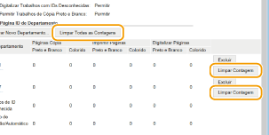 Se você deseja zerar os contadores, clique no link do texto correspondente e clique em [ID de Departamento] e clique em [Limpar Contagem]  [OK]. Se você deseja zerar os contadores de todas as IDs de departamento, clique em [Limpar Todas as Contagens]  [OK]. |