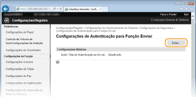 Defina se [Permitir] ou [Permitir Só Envio p/ Mim Mesmo] forem selecionados para [Envio de E-mail].