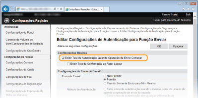 Marque a caixa de seleção [Exibir Tela de Autenticação Quando Operação de Envio Começar].