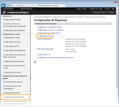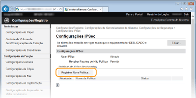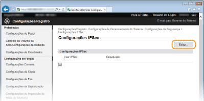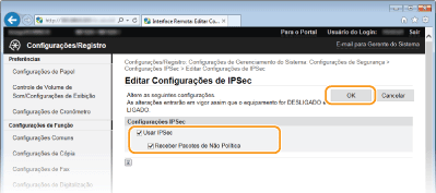 Você pode ativar ou desativar a comunicação IPSec em <Menu>. Usar IPSec |