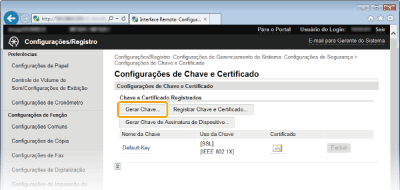 Um par de chaves não pode ser excluído se estiver sendo usado atualmente para alguma finalidade, como quando "TLS" ou "IEEE 802.1X" é exibido em [Uso da Chave]. Neste caso, desative a função ou substitua o par de chaves antes de excluí-lo.