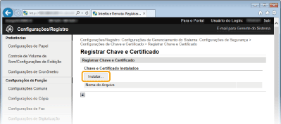 Clique [Registrar Chave e Certificado...] ou [Registrar Certificado CA...].