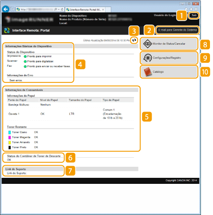 Exibe o ligação de assistência especificado em [Informações do Dispositivo] sob [Gerenciamento do Sistema].