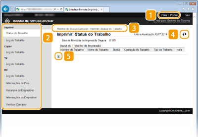 Exibe o status dos documentos atuais de impressão e o histórico de documentos impressos, copiados, enviados e recebidos. Você também pode verificar o status da máquina.