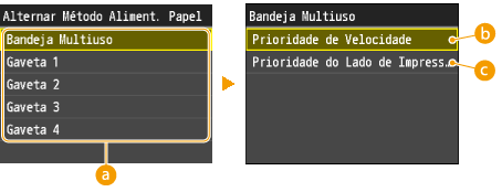 Papel), <Prioridade de Velocidade> é aplicado à fonte de papel. Neste caso, você precisa carregar o papel do mesmo modo que quando <Prioridade de Velocidade> é selecionado (