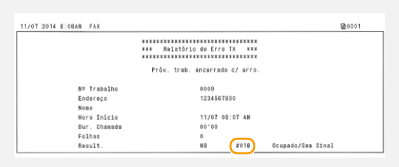Um fax não pôde ser enviado porque a máquina do destinatário não respondeu pois a linha estava ocupada ou por outras razões.