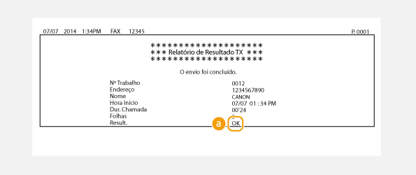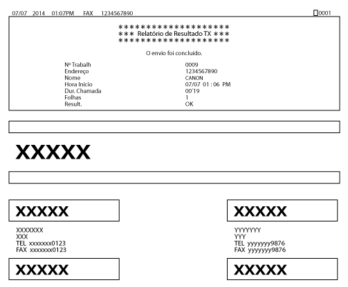 Para imprimir uma parte de um documento de fax no relatórioQuando você selecionar <Ativado> ou <Só Quando Há Erros> para <Relatório Resultado TX por Fax>, uma parte de um documento de fax pode ser incluída no relatório. Defina <Incluir Imagem TX> como <Ativado>. |