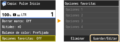 2 | Pulse <Opciones favoritas> <Guardar/Editar>. ![]() |