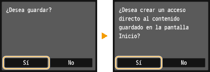 8 | Pulse <Sí>. Si en el paso 6 seleccionó opciones que ya estaban registradas, se mostrará una pantalla de confirmación para sobreescribir las opciones anteriores. ![]() |