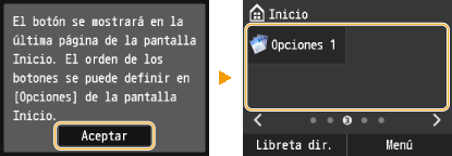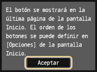 6 | Pulse <Aceptar>. El botón se añade después de los últimos botones dispuestos en la pantalla de inicio. ![]() |