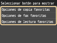 3 | Pulse las opciones que utilice con mayor frecuencia en copia/fax/lectura. Primero debe registrar las opciones que utilice con mayor frecuencia para copia, fax y lectura. ![]() |