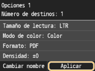 Las opciones utilizadas con mayor frecuencia para <Lectura> solo pueden registrarse para el e-mail, las carpetas compartidas y los servidores de archivos. Agregar botones desde <Opciones pan. inicio> |