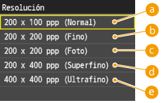![]() | Puede seleccionar la resolución más adecuada según su tipo de documento. Cuanto mayor sea la resolución, más nítida será la imagen, pero más tiempo tardará en enviarse. |
