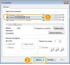 Seleccione su controlador de fax, y haga clic en [Imprimir].