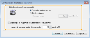 Haga clic en [Cuadernillo] para especificar las opciones detalladas según sus necesidades