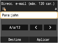 5 | Introduzca el texto del cuerpo utilizando las teclas numéricas y pulse <Aplicar>. Si pulsa <A/a/12> se alternarán los modos de entrada. |