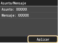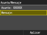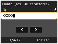 3 | Introduzca el asunto utilizando las teclas numéricas y pulse <Aplicar>. Si pulsa <A/a/12> se alternarán los modos de entrada. |