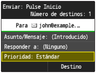 La prioridad se establece en "Estándar" de forma predeterminada.