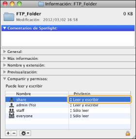 3 | Permita la Lectura/Escritura en [Privilegio]. ![]() |