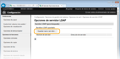 Haga clic en [Guardar nuevo servidor...] en [Servidor LDAP (para búsqueda)].