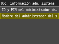 Especifique el <ID de administrador del sistema> y, a continuación, especifique el <PIN admdor. sistema>.